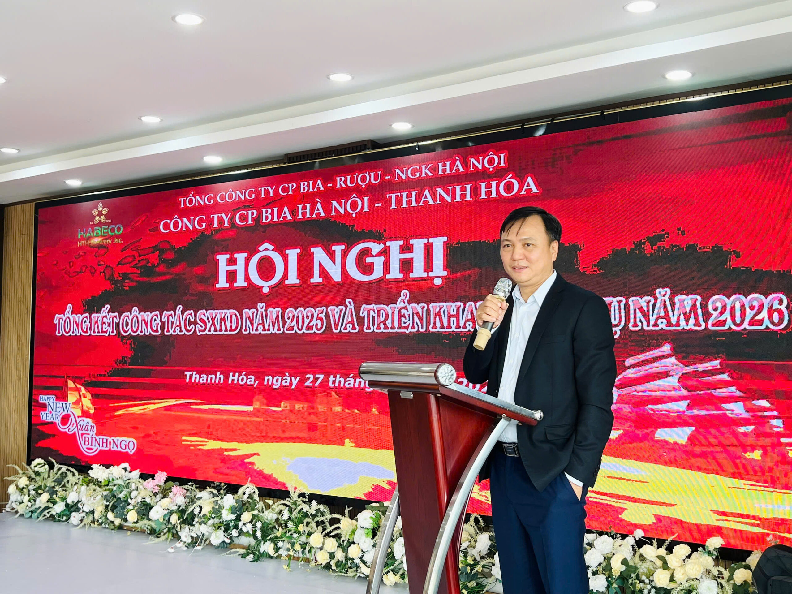 Đến dự và chỉ đạo Hội nghị, Ông Trần Đình Thanh – Chủ tịch HĐQT Tổng công ty Cổ phần Bia-Rượu-NGK Hà Nội ghi nhận những kết quả, nỗ lực của tập thể lãnh đạo, cán bộ nhân viên Công ty Cổ phần Bia Hà Nội – Thanh Hóa và Công ty TNHH MTV Thương mại Habeco Miền Trung. Ban lãnh đạo Tổng công ty tin tưởng và giao nhiệm vụ cho hai Công ty hoàn thành mục tiêu tăng trưởng sản lượng, doanh thu trong năm 2026.